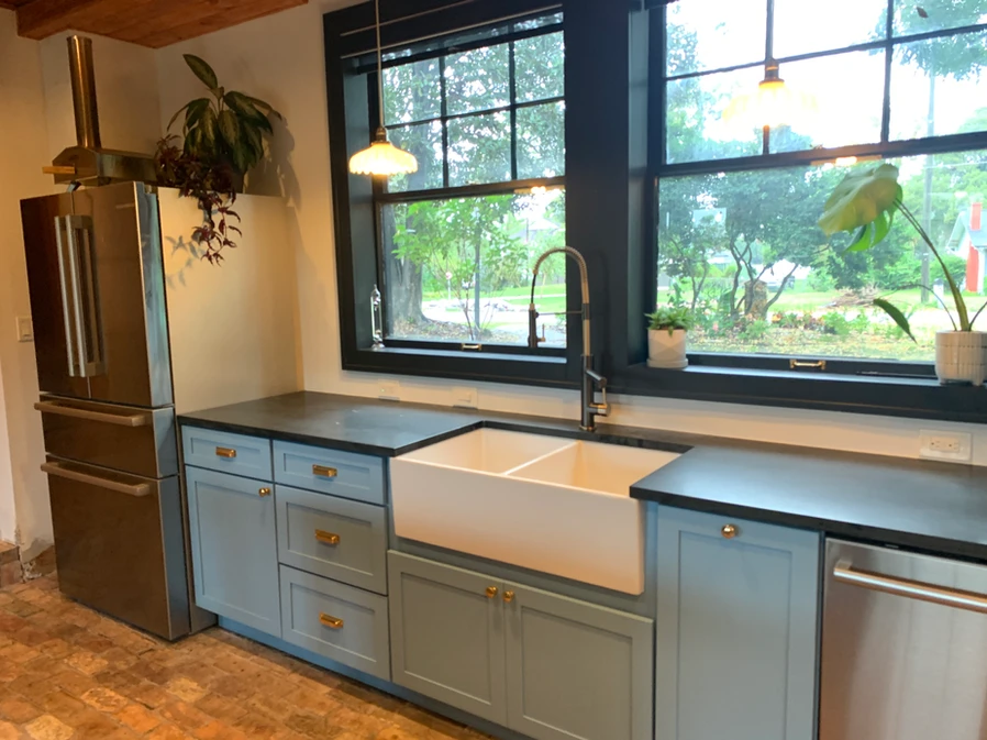 The soapstone countertops have been delivered and installed. They turned out great. When the sun hits it you can really see all of the gold flecks snd veins. The photos do not do the stone justice.