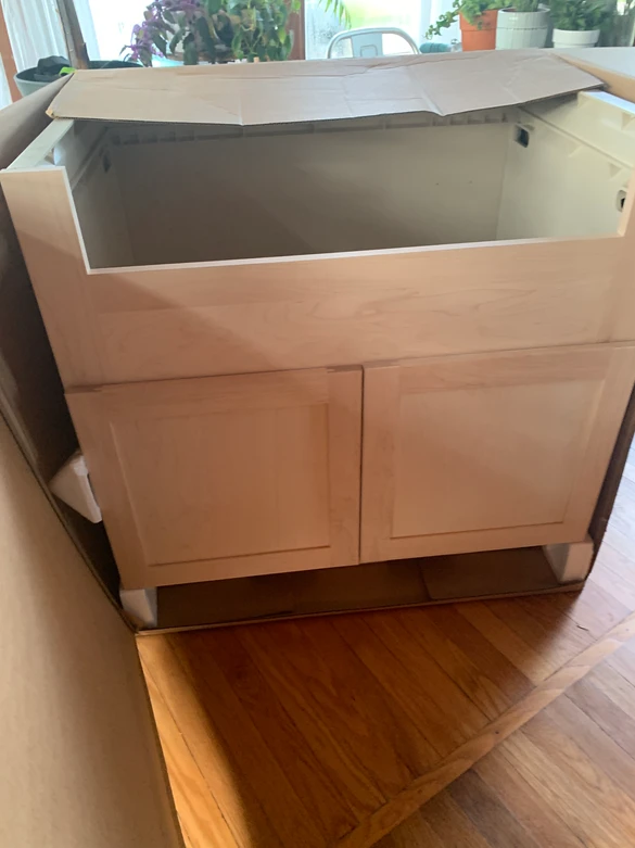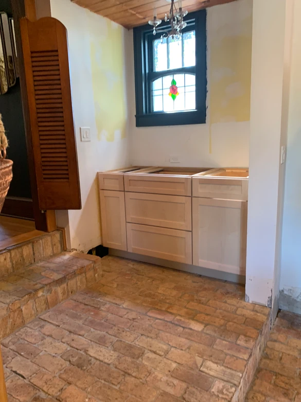 The cabinets have been delivered. After some electric gets installed we will be ready to install these beauties. They look great and we can't wait to get them in place. Once everything is installed, they will be painted our custom color.