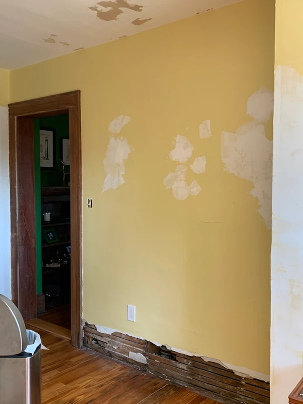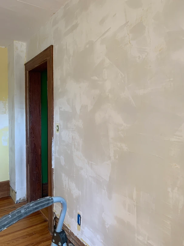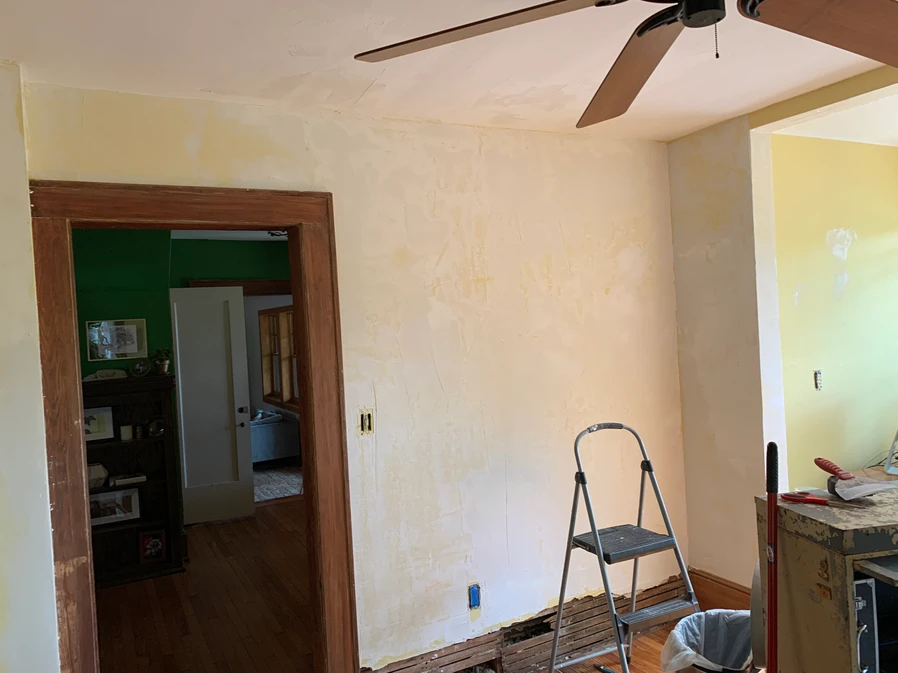The plaster in this room is the worst of anywhere else in the house. We believe that this room was actually the original kitchen because there is plumbing that runs to it, which makes sense. The walls look terrible due to the amount of remodeling that was done in this room over a 100-year period. People just patched over patches and spackled haphazardly.