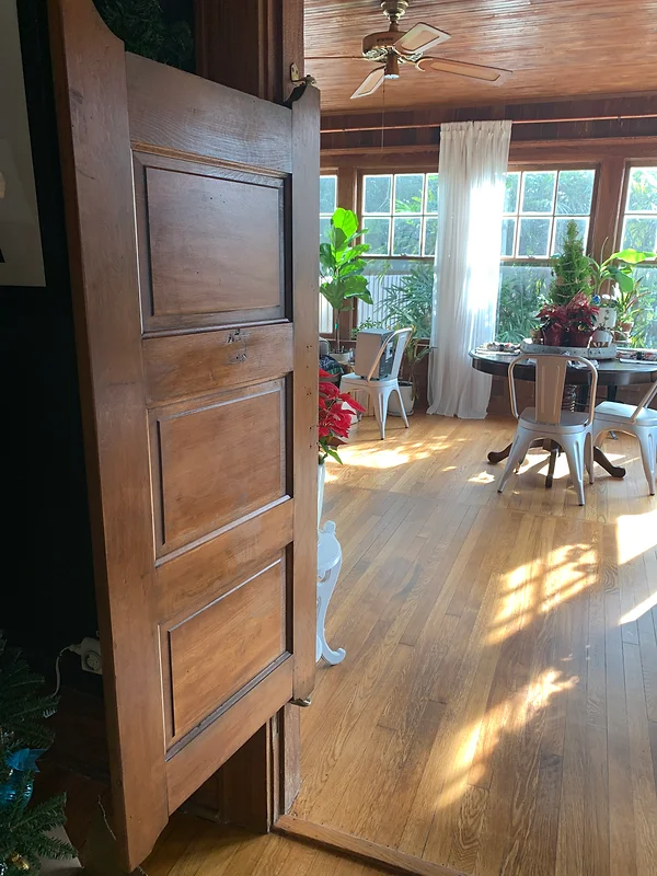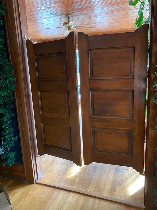 The saloon doors that lead into the sunroom are quite old and they have a beautiful patina to them. They show their age, and we like that about them.