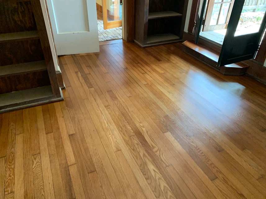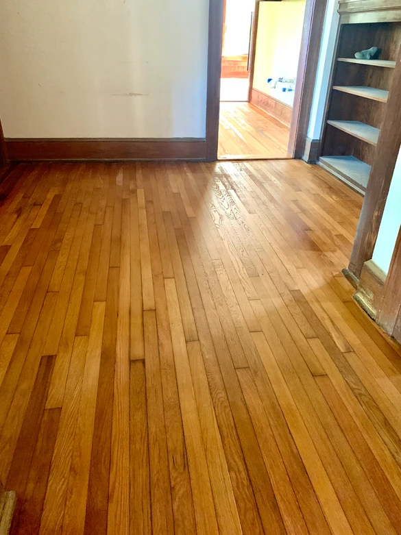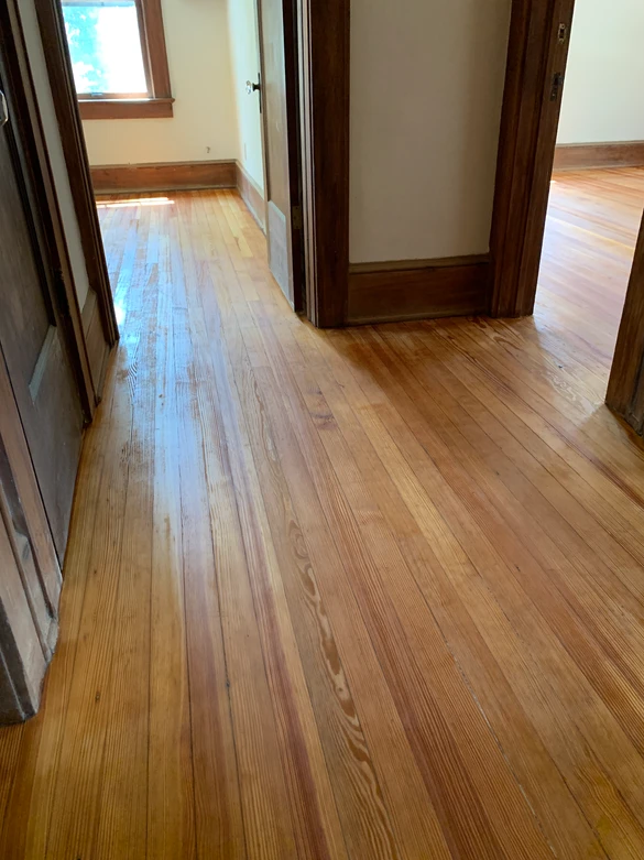 All of the floors now have 3 coats of matte poly on them and are dry to walk on. The variations of wood grain and color are beautiful. The age and imperfections are on full display, showing off the character of these antique floors. This is exactly what we were trying to achieve. We wanted to celebrate their age rather than hiding it with a dark stain.